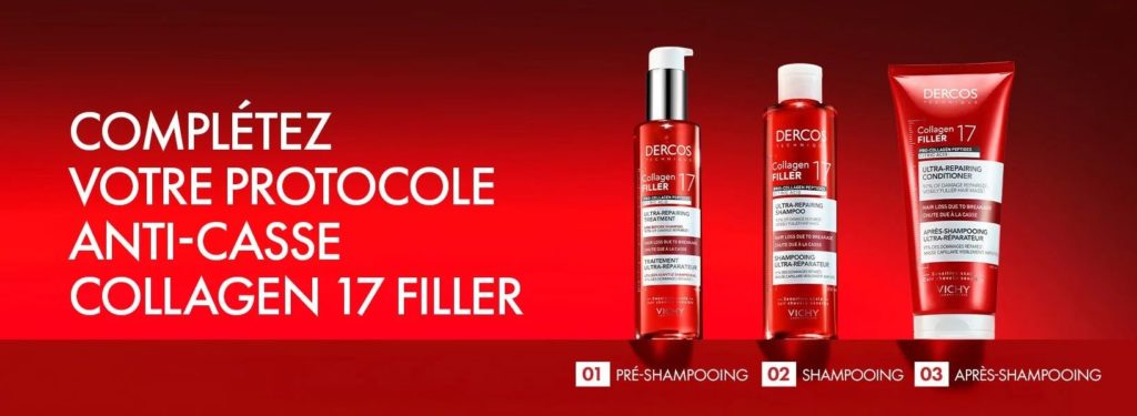 - Shampooing Dercos Collagen 17 – appliquer par-dessus le pré-traitement sans diluer pour une action renforcée.