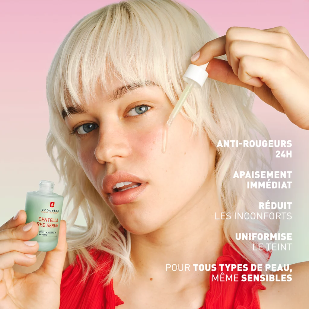 Résultat : la peau réagit, chauffe et perd en confort. C’est précisément sur ce besoin qu’Erborian a développé Erborian Centella Red Correct Serum.